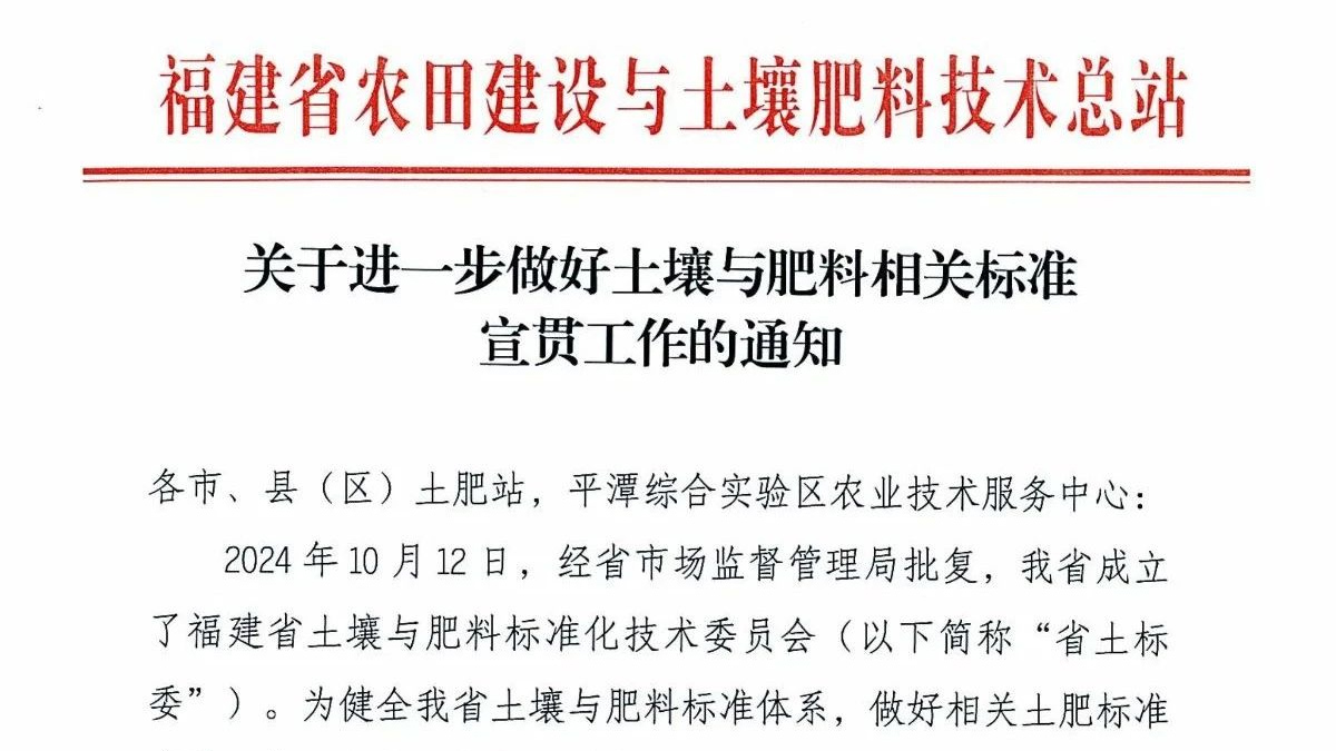 福建省農(nóng)田建設(shè)與土壤肥料技術(shù)總站關(guān)于進(jìn)一步做好土壤與肥料相關(guān)標(biāo)準(zhǔn)宣貫工作的通知。